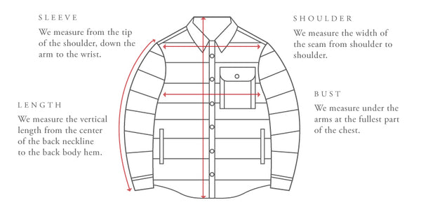| Chest Width | 61 | 64 | 68 | 72.5 | 77 |