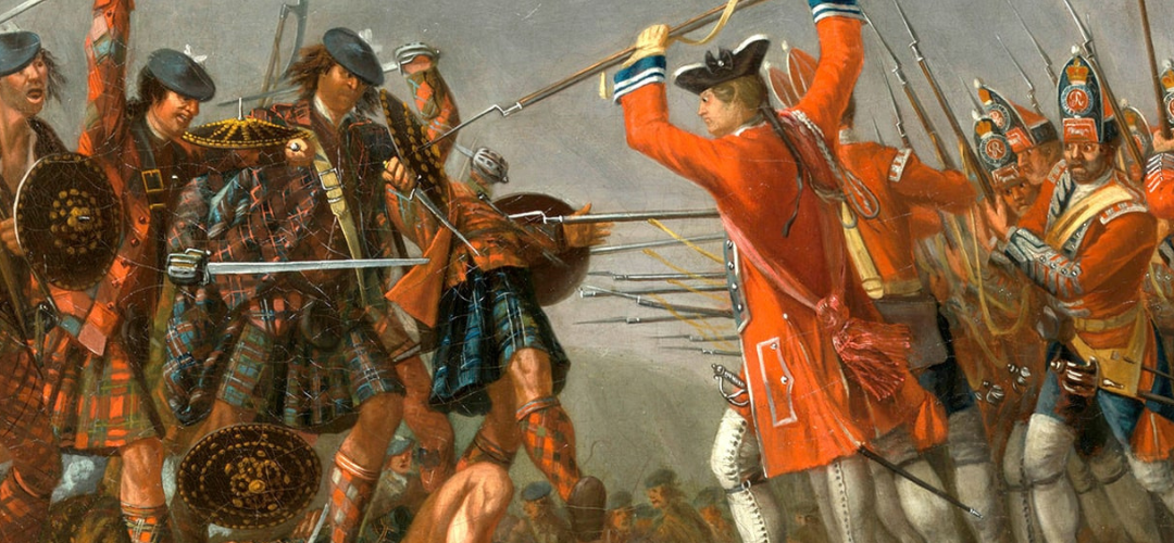 Highland clans wearing tartan clash with British redcoats during the Jacobite uprisings, illustrating the political conflict and cultural suppression that followed the Battle of Culloden in 1746.The Jacobite uprisings of the late seventeenth and eighteenth centuries were attempts to restore the exiled Stuart monarchy to the British throne. They drew heavily on Highland support, which meant that when the movement was defeated at Culloden in 1746, the response was both swift and pointed. The British government set about dismantling Highland culture at its most visible level. Highland dress was outlawed.